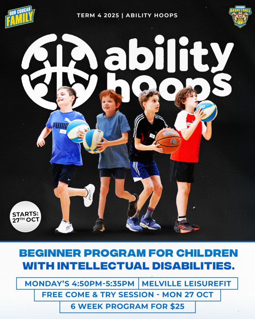 The Ability Hoops program will be run at Melville LeisureFit on a Monday afternoon during the school terms for 2025.