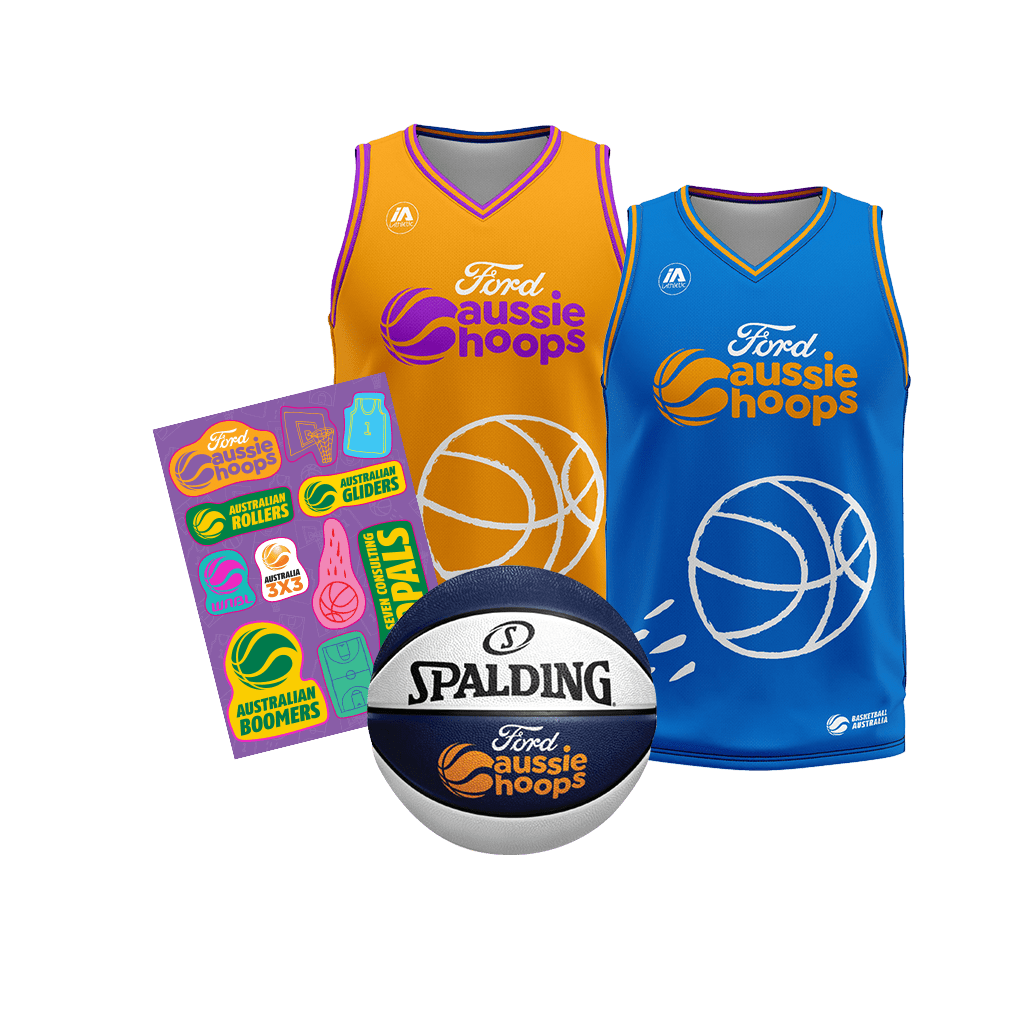 - Ford Aussie Hoops Core Pack – $50.00 (Personalised Singlet, Basketball and Sticker Sheet)